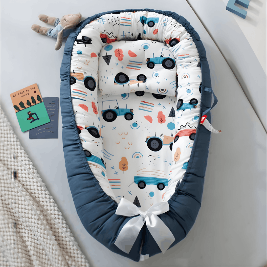 כאן בדיוק הבייבי נסט שלנו נכנס לתמונה – הפתרון המדויק שנועד לגשר על הפער הזה. הוא לא מחליף את העריסה שלכם, הוא פשוט הופך אותה למקום שהתינוק באמת ירגיש בטוח להיות בו. העיצוב הייחודי שלו מדמה את תחושת הרחם המוכרת ומעניק לו "חיבוק" עוטף מכל הצדדים. ברגע שהוא מרגיש את הגבולות הרכים סביבו, המוח שלו מקבל אות הרגעה מיידי: "אתה בטוח, אפשר להירגע ולנוח".