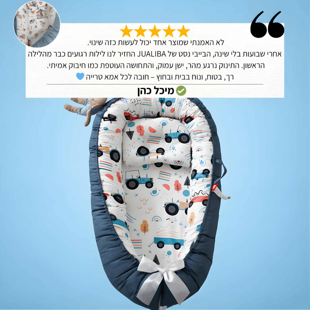 אחרי לילות בלי שינה כי אלה לא נרדמה בעריסה, הבנתי שמשהו שם לא עובד. העריסה פשוט הייתה גדולה לה מדי ולא נתנה לה תחושת ביטחון. הבייבי נסט הזה שינה לנו את הכל פתאום היא נרגעת, נרדמת מהר וישנה הרבה יותר טוב.